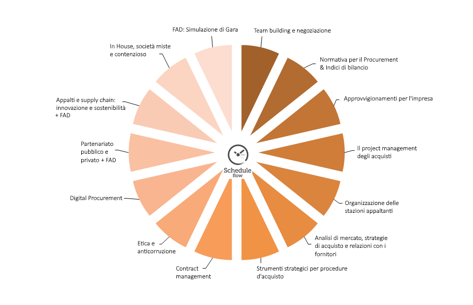 Ogni modulo prevede sia interventi di docenti universitari che di esperti in materia di procurement, con l’obiettivo di trovare il giusto equilibrio tra teoria e pratica. È prevista la possibilità di iscriversi ai singoli moduli.